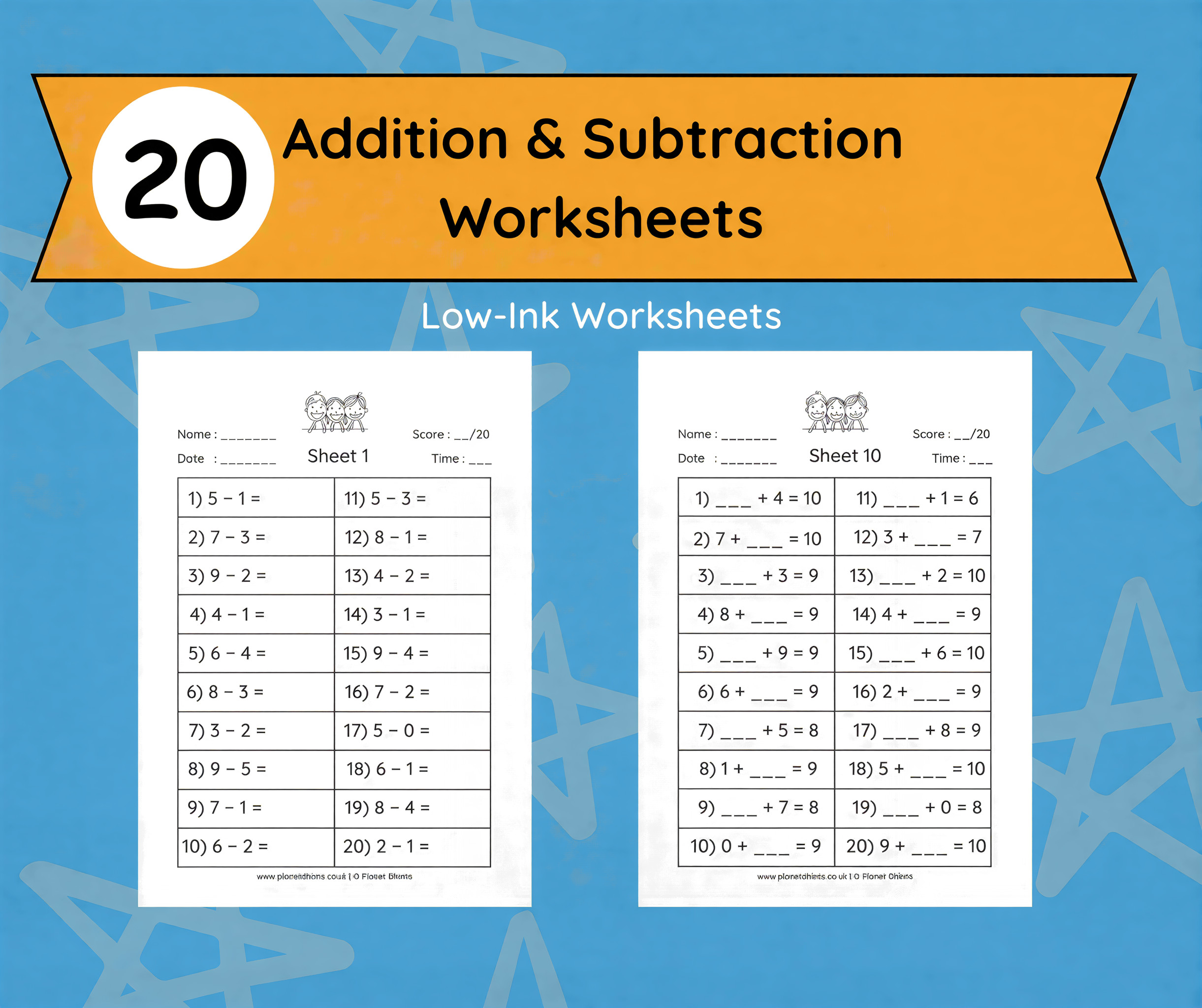 Make math practice simple and fun with these 20 Low-Ink Addition and Subtraction Worksheets for numbers up to 10! Designed for young learners, this printable pack helps children build confidence and fluency with basic math facts through clear, beginner-friendly activities.