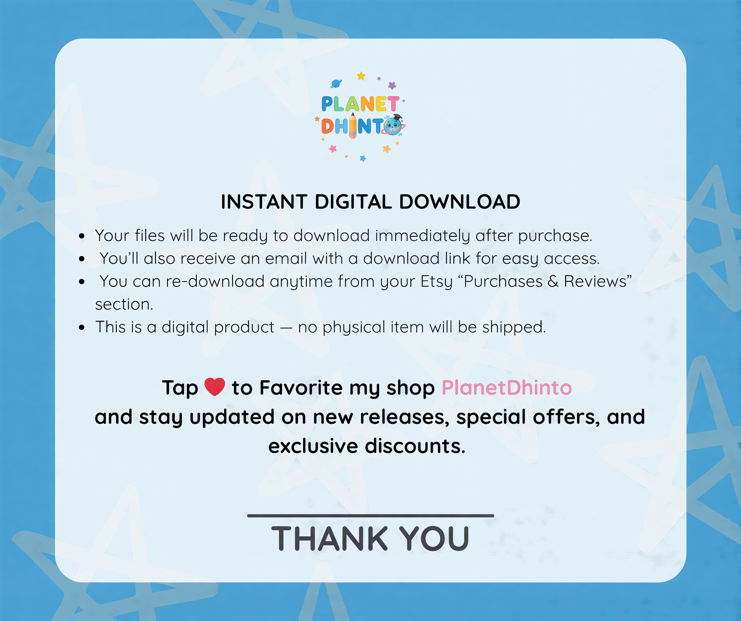 After purchase, your files will be available instantly.