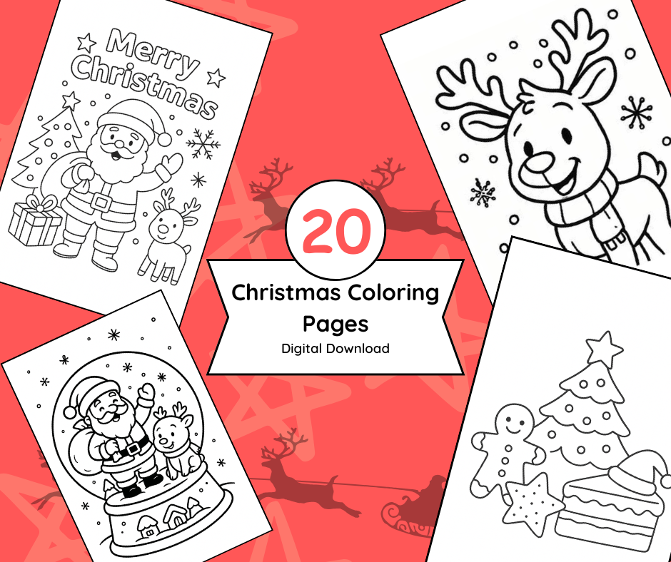 Bring festive creativity to the holiday season with this adorable set of 20 printable Christmas coloring pages for kids! This fun winter activity pack includes charming and easy-to-color illustrations such as Santa, reindeer, snowmen, ornaments, presents, gingerbread characters, and cheerful winter scenes.
