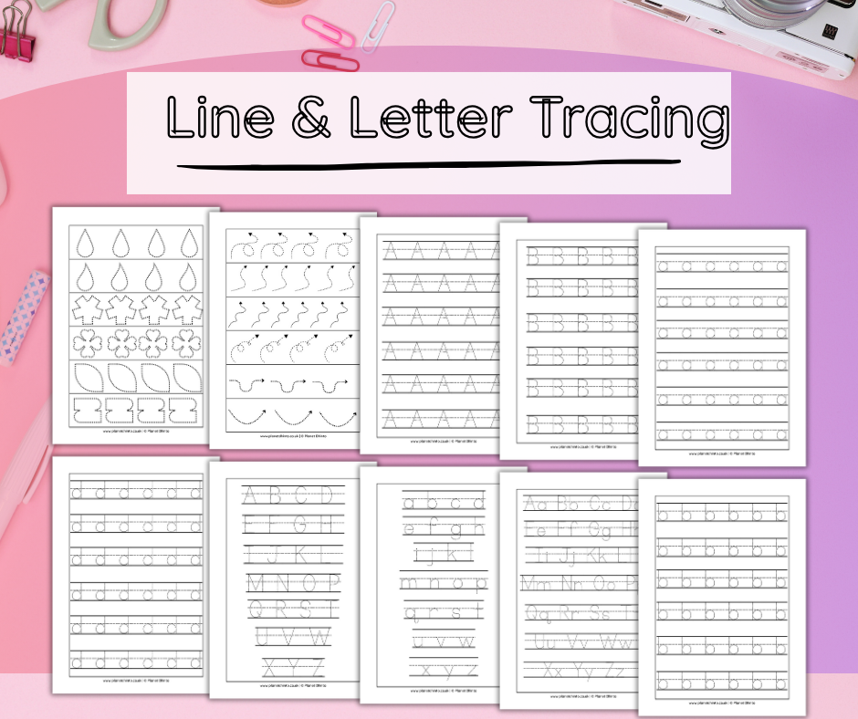 • Line practice pages (straight, zigzag & curvy paths)