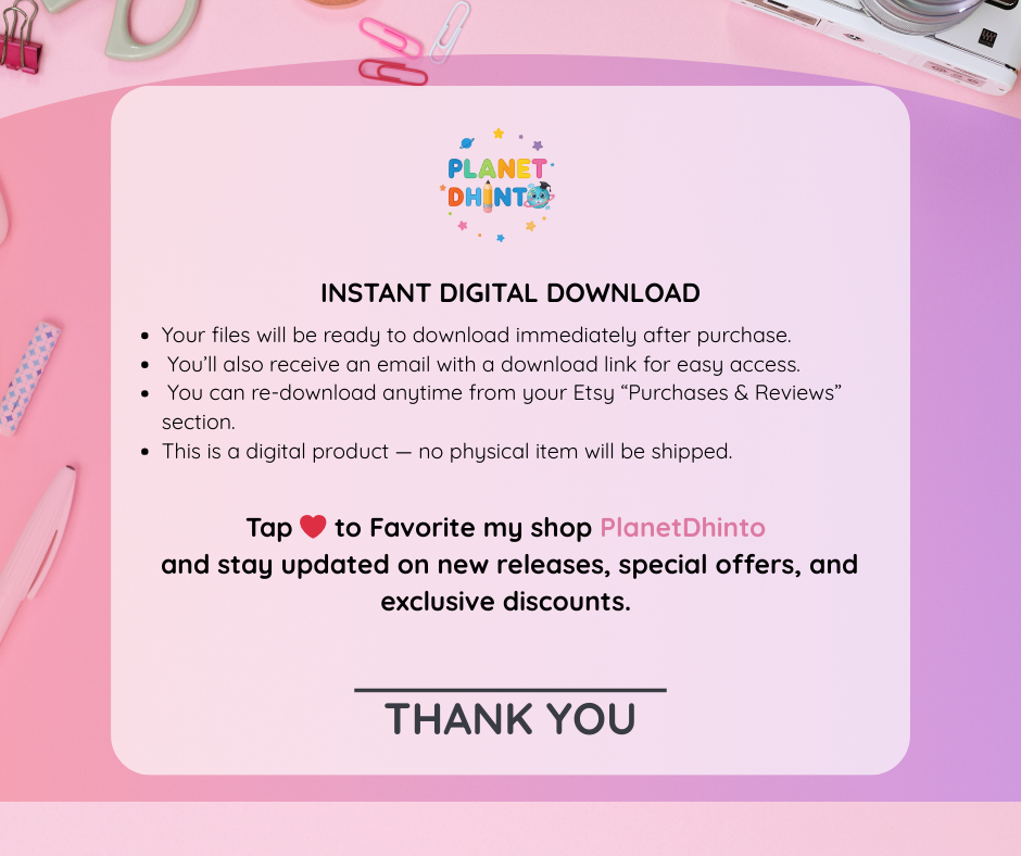 After purchase, your files will be ready instantly.
